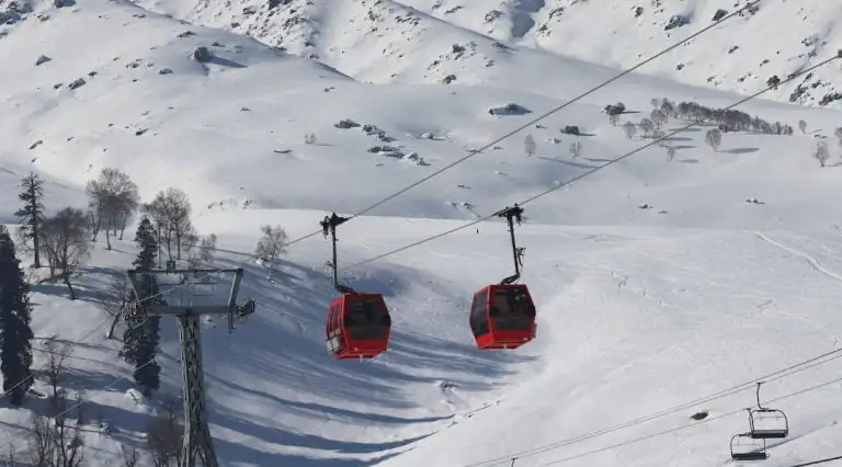 The Gondola ride is a cable car ride that takes visitors to the top of mountain Kongdoori Phase 1 station at an altitude of ( 8,530 ft ) and Apharwat Peak Phase 2 at an altitude of (14439 ft) which has an average temperature of minus 1 to minus 20 degrees Celsius. The ride takes around 2 hours and covers 5 km. From the top of the Apharwat Peak, the LOC is just 2km away and offers a panoramic view of the valley and is also major point for various trekking routes.
